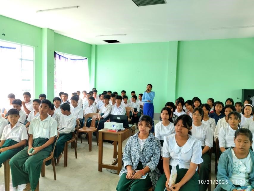 အဂတိလိုက်စားမှုတိုက်ဖျက်ရေးကော်မရှင်ရုံးခွဲ (တောင်ကြီး) မှ ဦးစီးမှူး ဦးကျော်စွာဦး က အလယ်တန်းအဆင့် ကျောင်းသားလူငယ် ဖြောင့်မတ်တည်ကြည်မှုမြှင့်တင်ရေး ပညာပေး (Edutainment) အစီအစဉ်များအား ရှင်းလင်းဆွေးနွေးစဉ်
