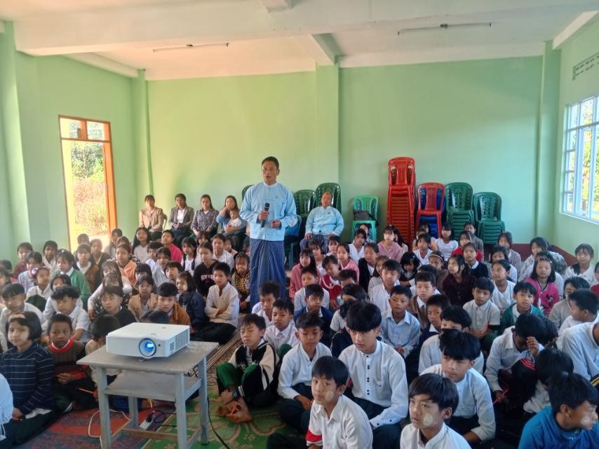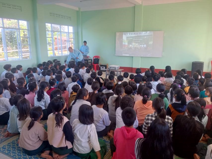 အဂတိလိုက်စားမှုတိုက်ဖျက်ရေးကော်မရှင်ရုံးခွဲ (တောင်ကြီး) မှ ဦးစီးမှူး ဦးကျော်စွာဦး က မူလတန်းအဆင့် ကျောင်းသားလူငယ်ဖြောင့်မတ်တည်ကြည်မှုမြှင့်တင်ရေးပညာပေး (Edutainment) အစီအစဉ်များအား ရှင်းလင်းဆွေးနွေးစဉ်