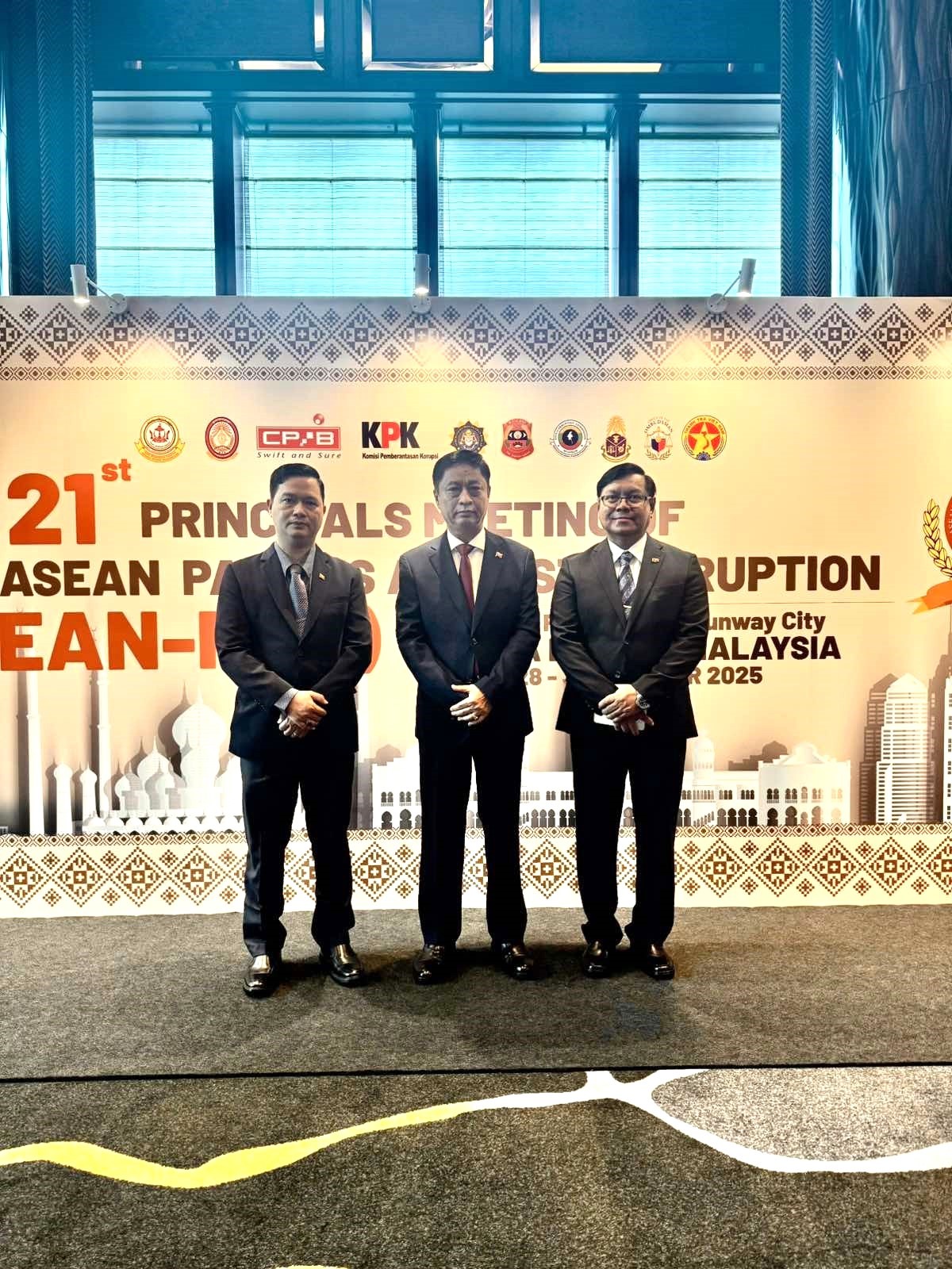 အဂတိလိုက်စားမှုတိုက်ဖျက်ရေးကော်မရှင် ဥက္ကဋ္ဌ ဦးလွင်ဦး ဦးဆောင်သော ကိုယ်စားလှယ် အဖွဲ့သည် မလေးရှားနိုင်ငံအဂတိလိုက်စားမှုတိုက်ဖျက်ရေးကော်မရှင်၏ Chief Commissioner ဖြစ်သူ Tan Sri Dato’ Sri Hj. Azam Baki ၏ ဖိတ်ကြားချက်အရ ၂၀၂၅ ခုနှစ်၊ အောက်တိုဘာလ ၂၈ ရက်နေ့မှ ၃၀ ရက်နေ့အထိ မလေးရှားနိုင်ငံ၊ ကွာလာလမ်ပူမြို့၌ ကျင်းပပြုလုပ်သည့် အာဆီယံ အဂတိလိုက်စားမှု တိုက်ဖျက်ရေးအဖွဲ့ (ASEAN-PAC) ၏ (၂၁) ကြိမ်မြောက် အကြီးအမှူးများ အစည်းအဝေးသို့ တက်ရောက်ခဲ့ကြပါသည်။