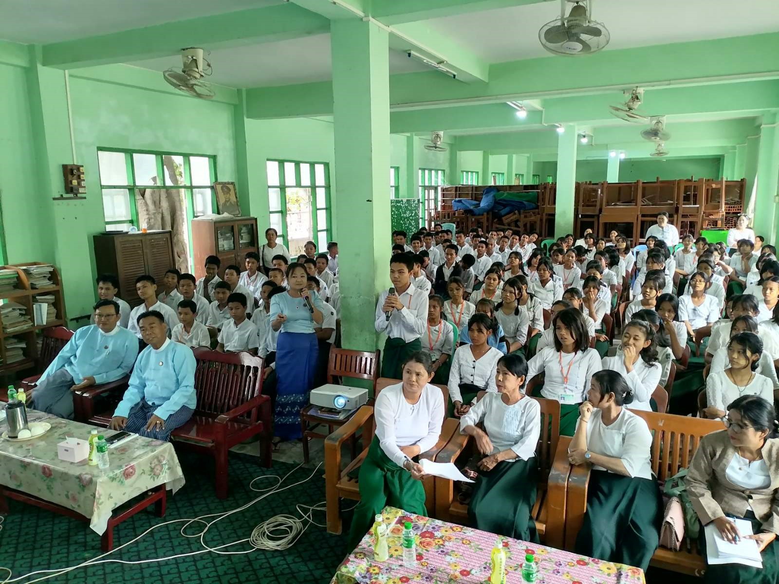 အဂတိလိုက်စားမှုတိုက်ဖျက်ရေးကော်မရှင်ရုံးခွဲ(မန္တလေး) မှ ဦးစီးအရာရှိ ဒေါ်စန္ဒာမိုး က အလယ်တန်းအဆင့် ကျောင်းသားလူငယ်ဖြောင့်မတ်တည်ကြည်မှုမြှင့်တင်ရေးပညာပေး (Edutainment) အစီအစဉ်များအား ရှင်းလင်းဆွေးနွေးစဉ်