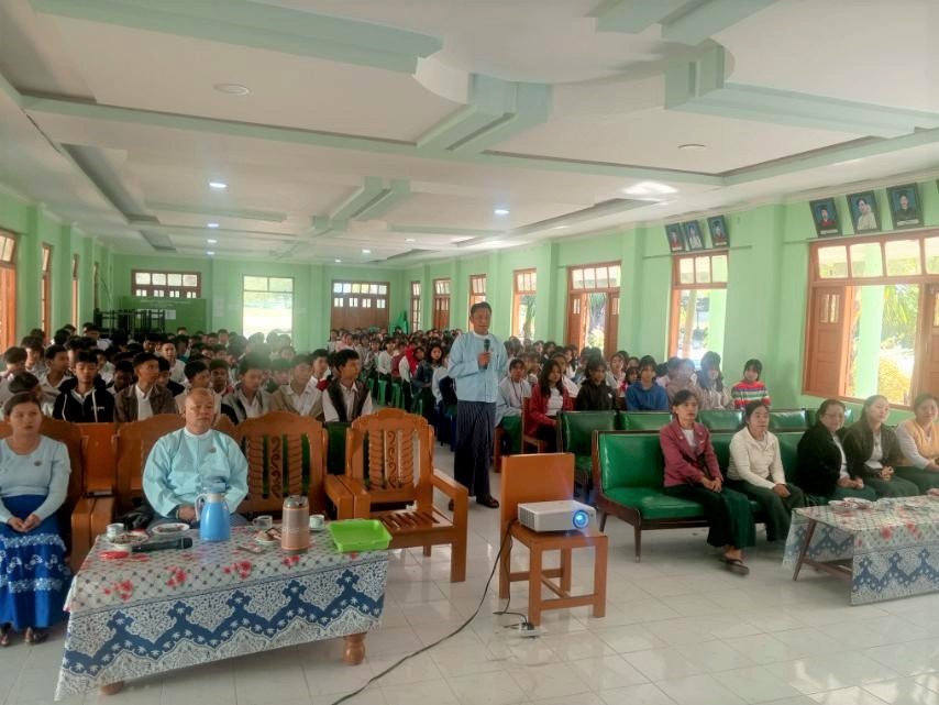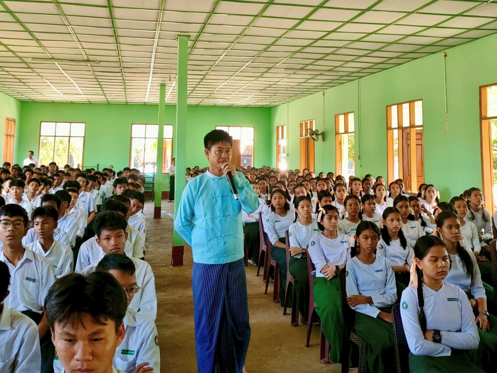 အဂတိလိုက်စားမှုတိုက်ဖျက်ရေးကော်မရှင်ရုံးခွဲ(မော်လမြိုင်)မှ ညွှန်ကြားရေးမှူး ဦးဖြူစိုးကြည် က အလယ်တန်းအဆင့် ကျောင်းသားလူငယ်ဖြောင့်မတ်တည်ကြည်မှုမြှင့်တင်ရေးပညာပေး (Edutainment) အစီအစဉ်များအား ရှင်းလင်းဆွေးနွေးစဉ်