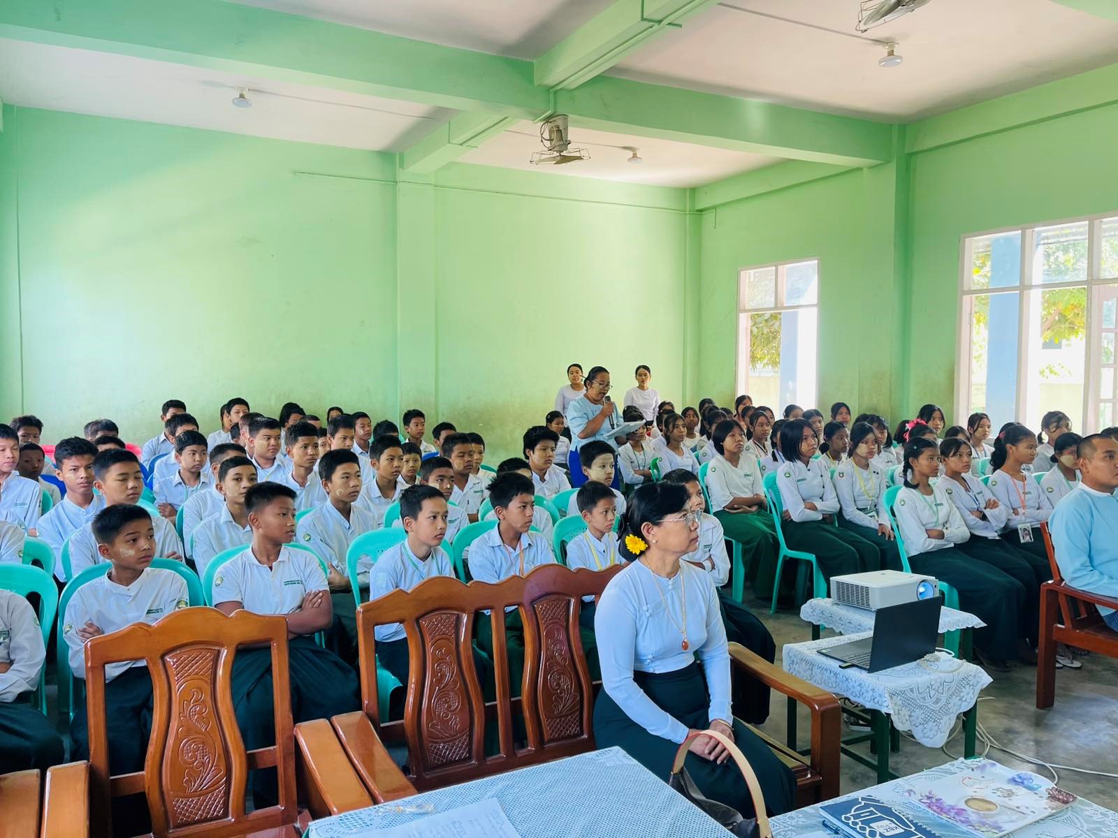 အဂတိလိုက်စားမှုတိုက်ဖျက်ရေးကော်မရှင်ရုံးခွဲ(မန္တလေး) မှ ဦးစီးအရာရှိ ဒေါ်နွဲ့နွဲ့မူ က အလယ်တန်းအဆင့် ကျောင်းသားလူငယ်ဖြောင့်မတ်တည်ကြည်မှုမြှင့်တင်ရေးပညာပေး (Edutainment) အစီအစဉ်များအား ရှင်းလင်းဆွေးနွေးစဉ်