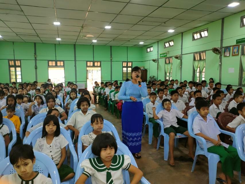 အဂတိလိုက်စားမှုတိုက်ဖျက်ရေးကော်မရှင်ရုံးခွဲ (မော်လမြိုင်) မှ ဒု/ လ-ထ ဦးစီးမှူး ဒေါ်ခိုင်မေဇင်ဦး က မူလတန်းအဆင့် ကျောင်းသားလူငယ် ဖြောင့်မတ်တည်ကြည်မှုမြှင့်တင်ရေး ပညာပေး(Edutainment) အစီအစဉ်များအား ရှင်းလင်းဆွေးနွေးစဉ်
