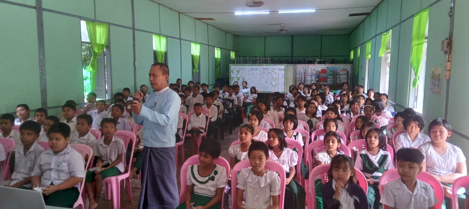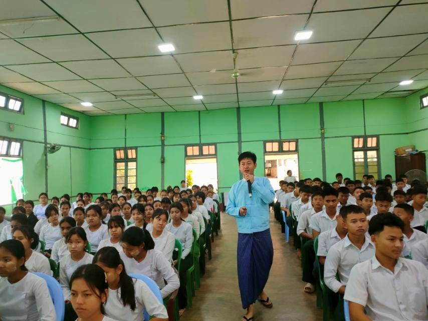 အဂတိလိုက်စားမှုတိုက်ဖျက်ရေးကော်မရှင်ရုံးခွဲ (မန္တလေး) မှ ဦးစီးအရာရှိ ဦးထွန်းလင်း က အလယ်တန်းအဆင့် ကျောင်းသားလူငယ် ဖြောင့်မတ်တည်ကြည်မှုမြှင့်တင်ရေး ပညာပေး(Edutainment) အစီအစဉ်များအား ရှင်းလင်းဆွေးနွေးစဉ်