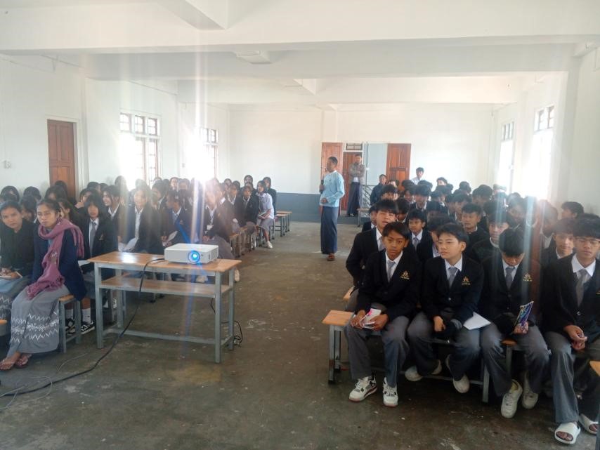 အဂတိလိုက်စားမှုတိုက်ဖျက်ရေးကော်မရှင်ရုံးခွဲ(တောင်ကြီး)မှ ဦးစီးမှူး ဦးကျော်စွာဦး က အလယ်တန်းအဆင့် ကျောင်းသားလူငယ်ဖြောင့်မတ်တည်ကြည်မှုမြှင့်တင်ရေးပညာပေး (Edutainment) အစီအစဉ်များအား ရှင်းလင်းဆွေးနွေးစဉ်