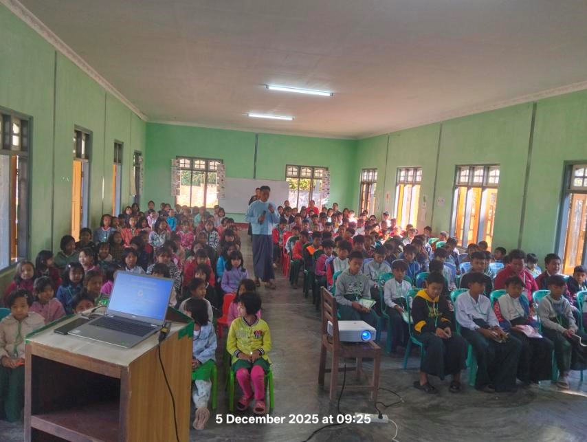 အဂတိလိုက်စားမှုတိုက်ဖျက်ရေးကော်မရှင်ရုံးခွဲ(တောင်ကြီး)မှ ဦးစီးမှူး ဦးကျော်စွာဦး က မူလတန်းအဆင့် ကျောင်းသားလူငယ်ဖြောင့်မတ်တည်ကြည်မှုမြှင့်တင်ရေးပညာပေး (Edutainment) အစီအစဉ်များအား ရှင်းလင်းဆွေးနွေးစဉ်