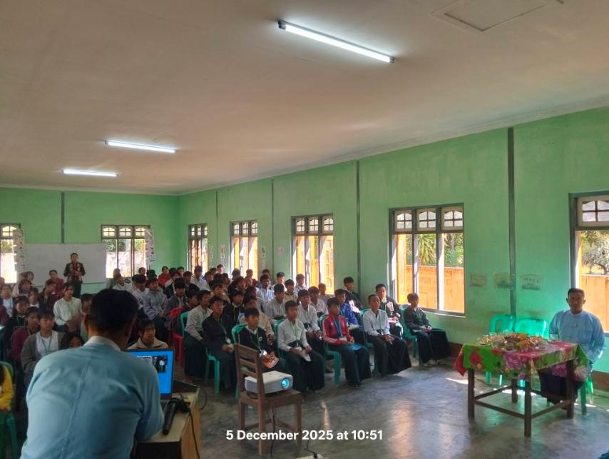 အဂတိလိုက်စားမှုတိုက်ဖျက်ရေးကော်မရှင်ရုံးခွဲ(တောင်ကြီး)မှ ဦးစီးမှူး ဦးကျော်စွာဦး က အလယ်တန်းအဆင့် ကျောင်းသားလူငယ်ဖြောင့်မတ်တည်ကြည်မှုမြှင့်တင်ရေးပညာပေး (Edutainment) အစီအစဉ်များအား ရှင်းလင်းဆွေးနွေးစဉ်