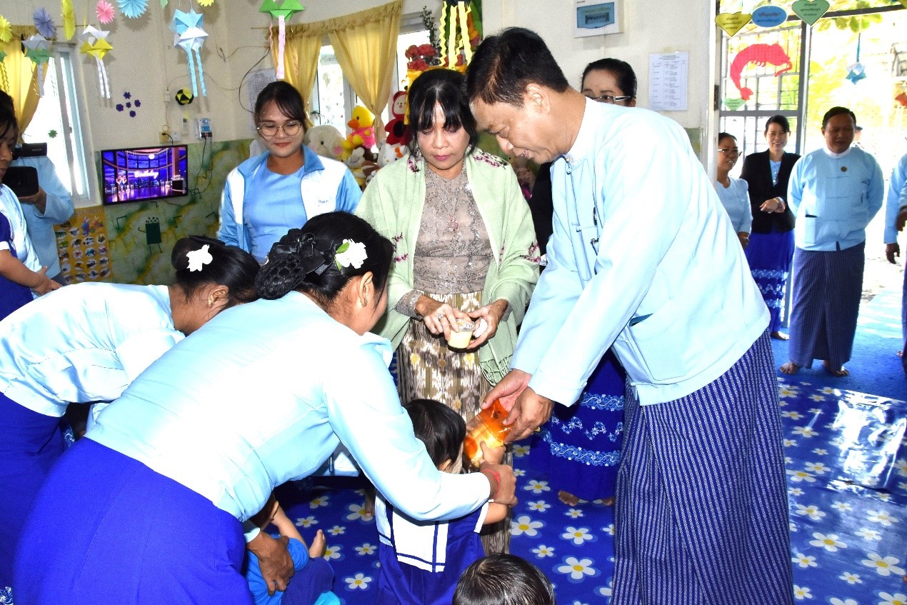 အဂတိလိုက်စားမှုတိုက်ဖျက်ရေးကော်မရှင် ဥက္ကဋ္ဌနှင့် ဇနီးက ကုသိုလ်ဒါနအဖြစ် “ရင်သွေးရတနာ” နေ့ကလေးထိန်းကျောင်းရှိ ကလေးငယ်များအား အာဟာရဖြည့်စွက်အစားအစာများနှင့် ကော်မရှင်ရုံးဝန်ထမ်းများအား နေ့လယ်စာများ ကျွေးမွေးလှူဒါန်း