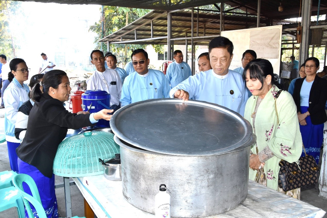 ကော်မရှင်ဥက္ကဋ္ဌ ဦးလွင်ဦးနှင့် ဇနီးတို့က ရင်သွေးငယ်များအား အာဟာရဖြည့်စွက် အစားအစာများဖြစ်သည့် ကြက်ဥပူတင်းနှင့် ပေါင်မုန့်များ ဝေငှခြင်း