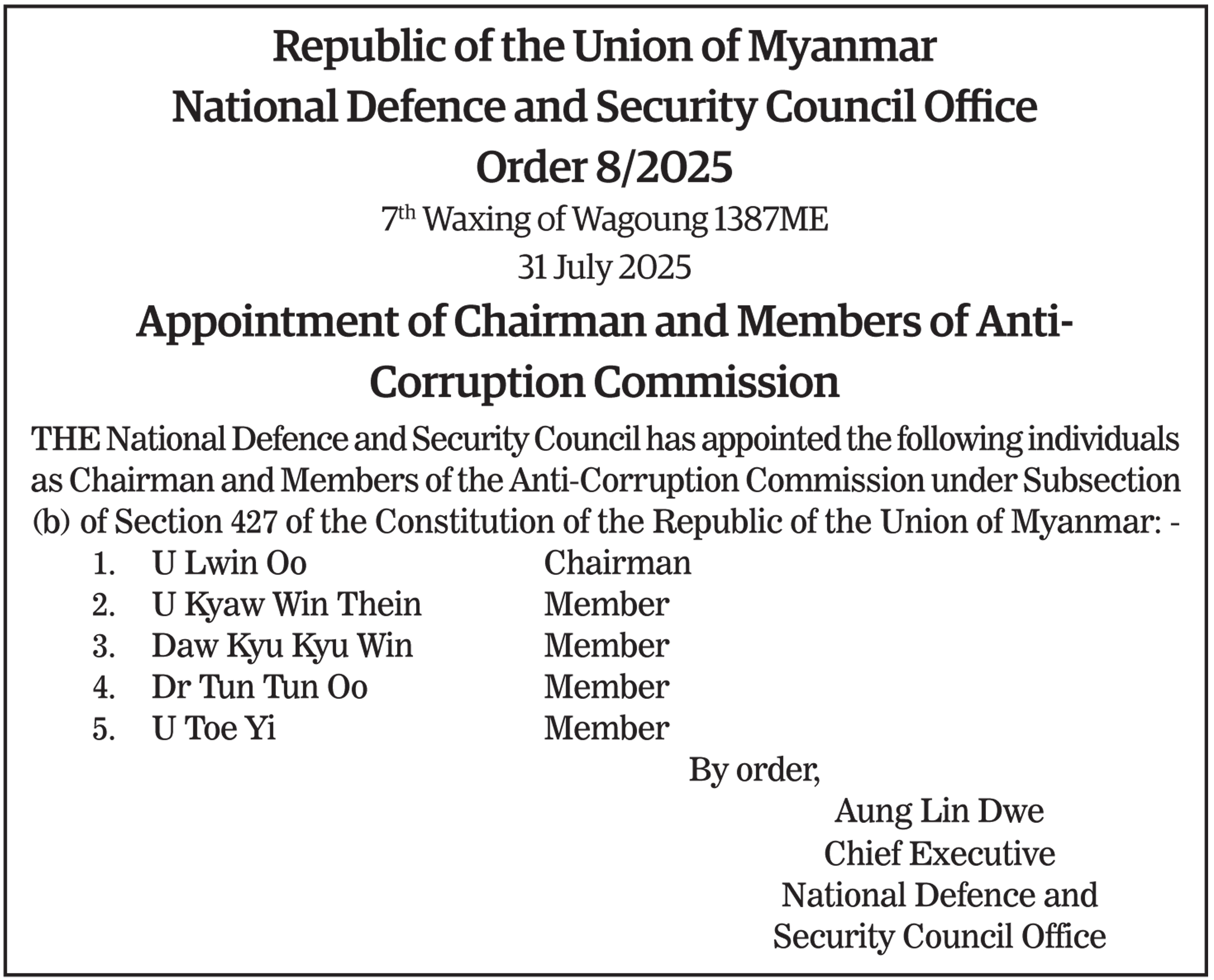 Order (8/2025)